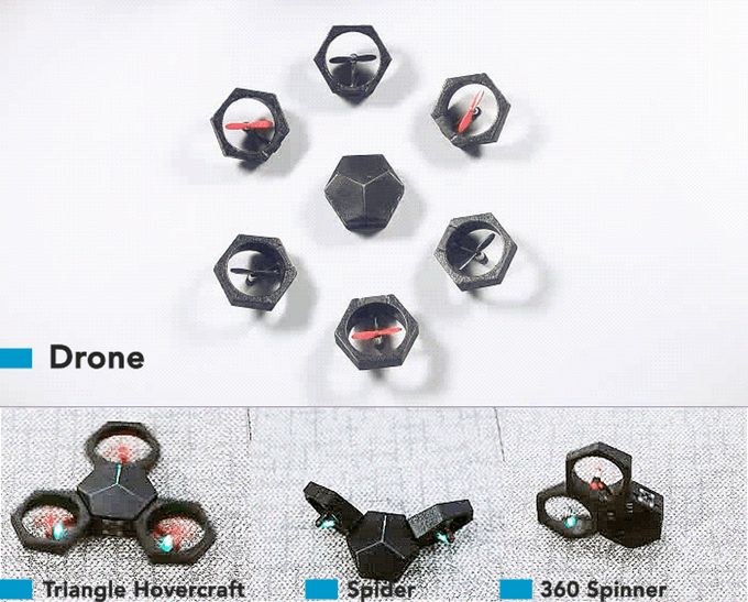 它由七个小的飞行模块组成,每个模块都具有磁性,只需要将两个模块拼在一起,它就能紧紧的吸附住,组装和拆卸的过程都很简单,完全不需要任何工具。