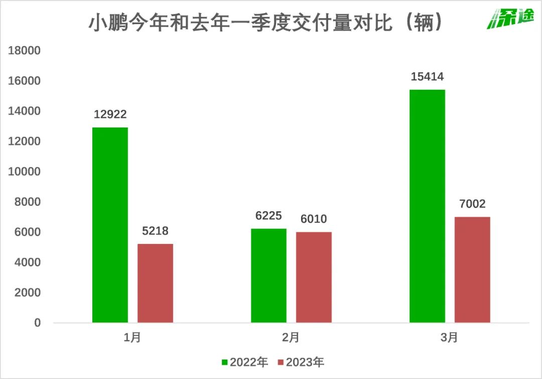 去年9月发布新车G9后,小鹏就一直蹲在坑里没出来。今年3月,小鹏交付新车7002辆,这是它连续第8个月交付量不过万。而且,今年一季度跟去年同期相比,小鹏每个月的交付量都是下滑的。