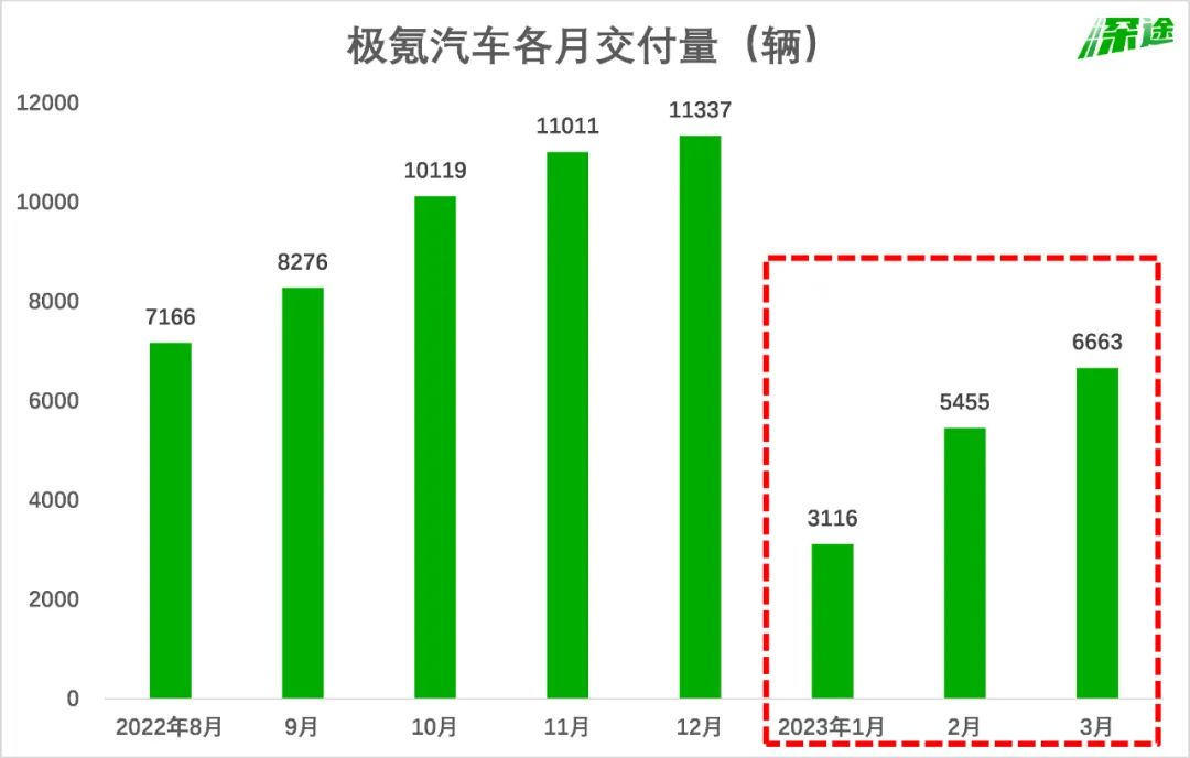 去年的最后三个月,极氪的交付量连续过万,然后在今年1月暴跌至3000多辆,3月才恢复至6000多辆,距离市场的期望还很远。去掉极氪009的订单,极氪001在3月只有4000多辆,下滑严重。