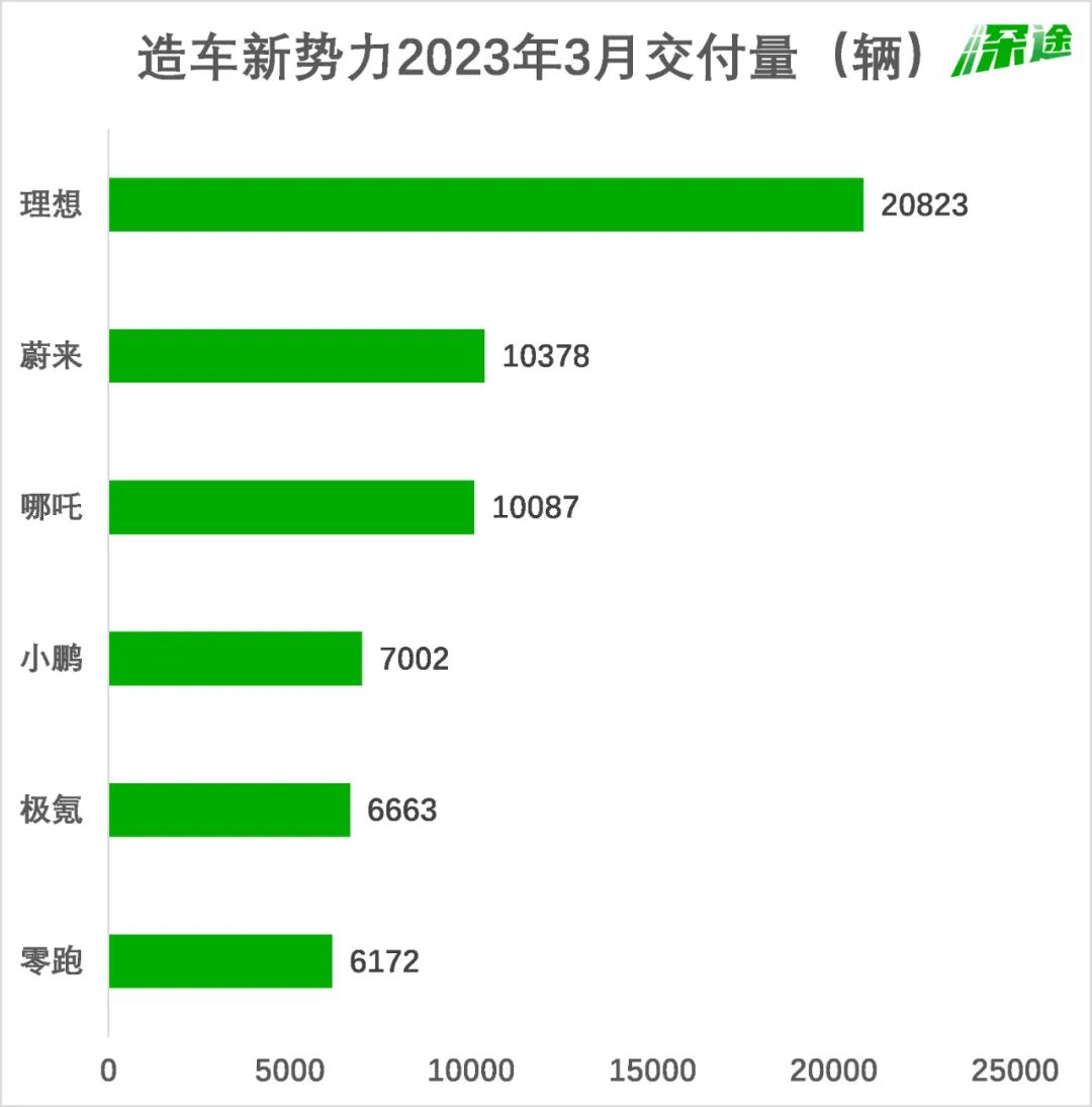 理想又拿了个冠军,交付20823辆;蔚来排第二,交付10378辆;哪吒交付10078辆排在第三。剩下的新势力们,交付量都没过万。这其中,岚图、问界没交卷。
