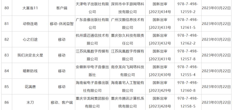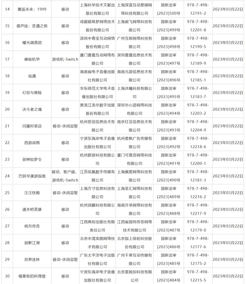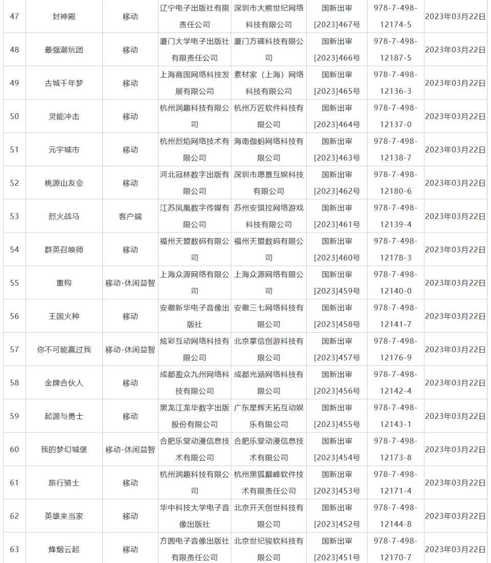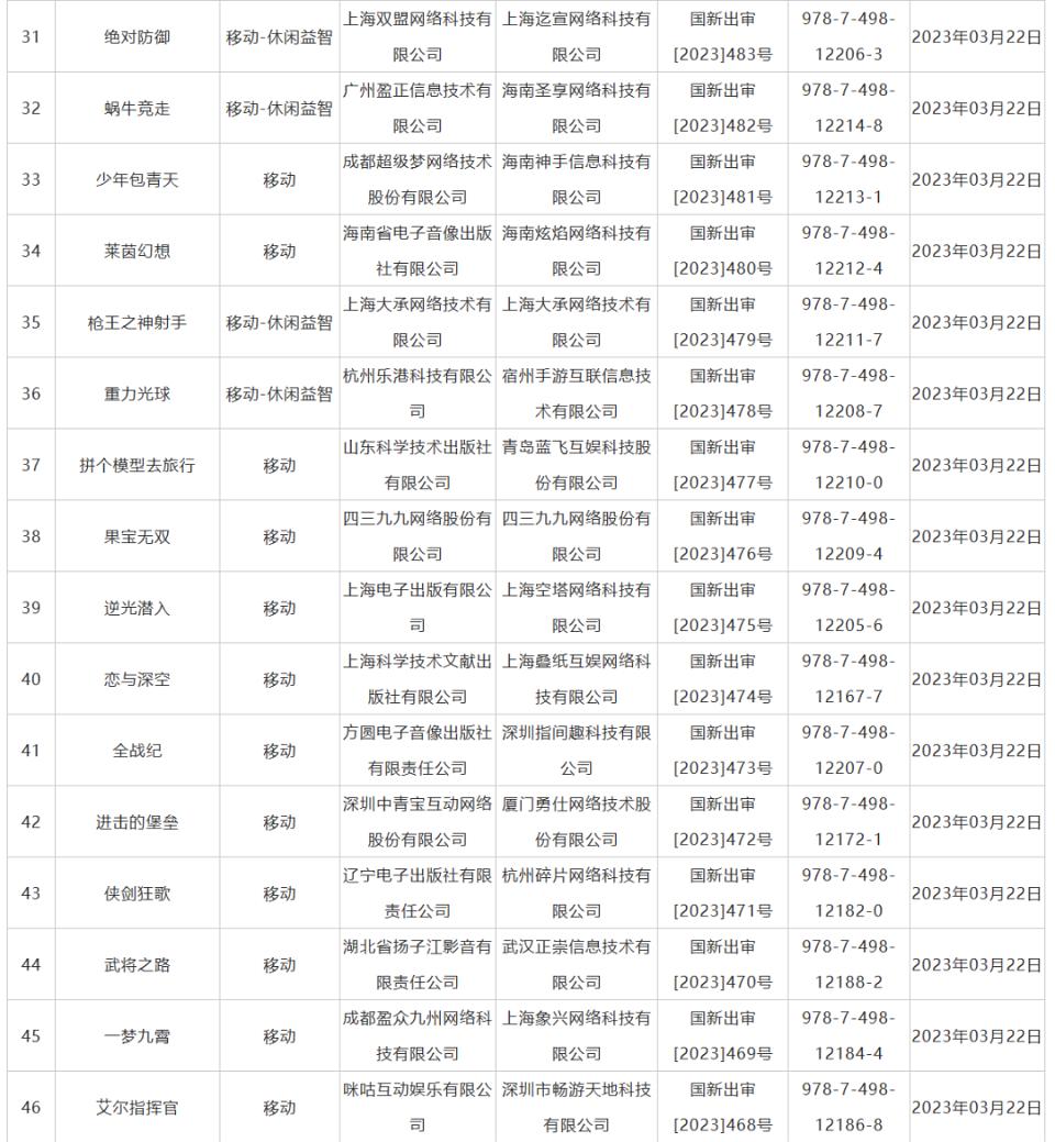 不仅如此,3月还另外下发了一批进口游戏版号,共27个,包括《冒险岛:联盟的意志》《劲舞团:全民派对》《传说法师》《妖怪手表4强化之章》等。离2022年进口游戏版号下发仅过3个月,本月就又迎来了2023年度的进口游戏版号,这同样对行业信心有提振作用。