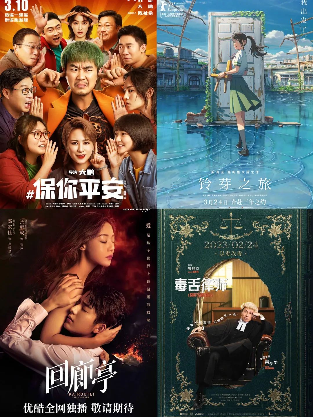 其中, 票房前两名为5.5亿的《保你平安》和4.3亿的《铃芽之旅》。两部影片豆瓣评分均在7分以上,具有较强的口碑效应,目前仍后劲十足,有望为四月票房继续助力。第二梯队为《回廊亭》与《毒舌律师》,分别收获2亿与1.1亿,一共4部破亿影片中有3部国产片。后续梯队则仍由春节档影片作为主力,来自漫威和DC的引进片票房则分别仅位列第11名和第12名。