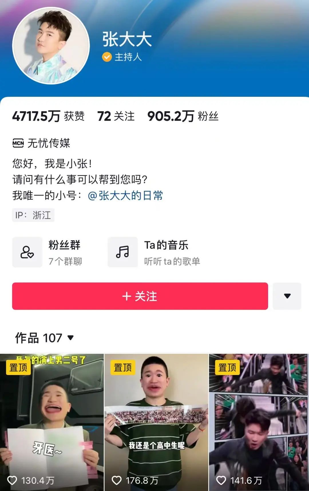 抖音并未上市,因此并没有明确的数据。但从其始终未宣布用户规模突破7亿来看,抖音的用户增长也遇到了一定的瓶颈。当然,在过去的一个月里,抖音还是稳定地打造出了新晋顶流。主持人张大大靠着连麦直播和无忧传媒的剧本手段,目前已经涨粉至近千万。
