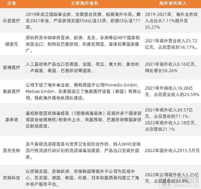 这些企业中,乐普医疗、健康元、鱼跃医疗等公司已上市产品众多,且在海外进行了广泛的业务布局。