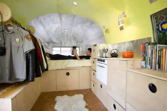 这辆十五英尺长、精美装备的Airstream房车配备了基本的家具包括床、书桌等。目前,Andreasy正在Craiglist上以每月$525的价格出租它。唯一需要注意的就是找个附近有洗手间的地方停靠它,当然你也可以自己装个便携式马桶。