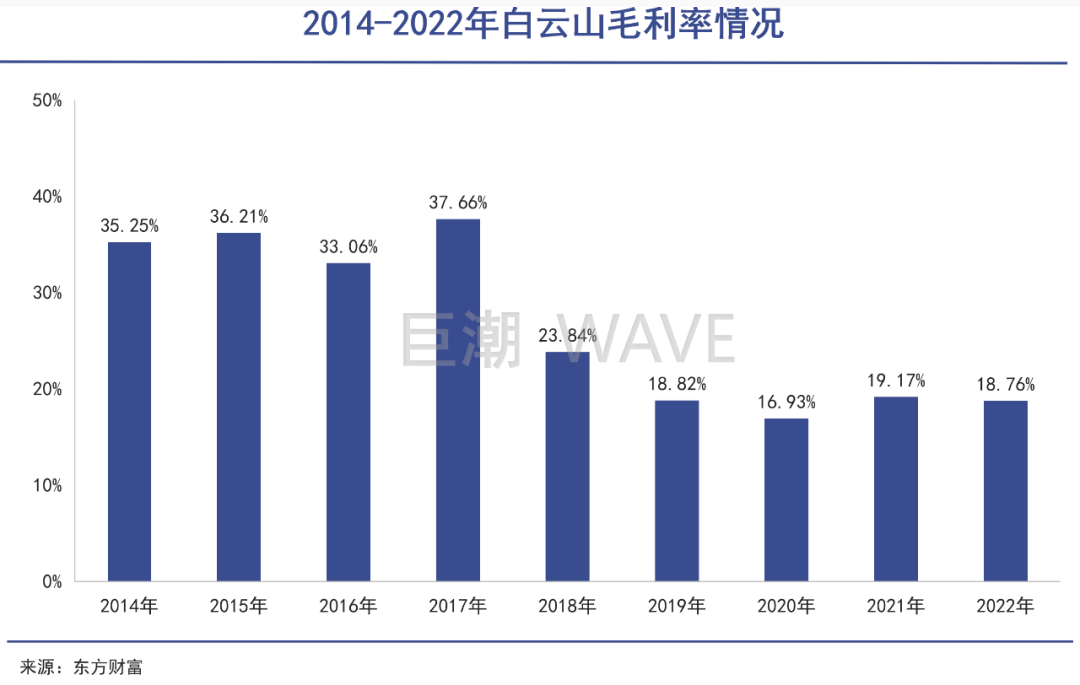 2018年,白云山的营业收入同比增加了210亿元。其中,大商业板块增加了184亿元,毛利率仅6.91%。这直接将白云山2018年的整体毛利率拉低了13.82%。