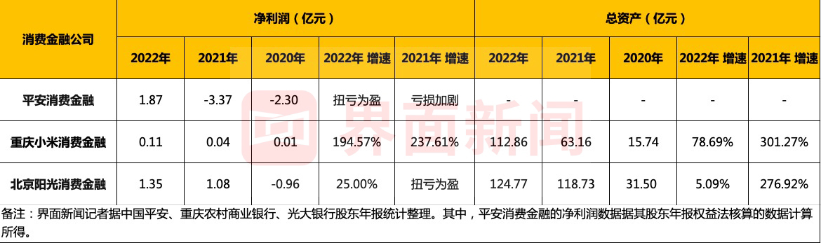 公开资料显示,3家消费金融公司均于2020年开业,其中,平安消费金融最早于当年4月,随后是小米消费金融于5月开业,阳光消费金融则于8月开业。