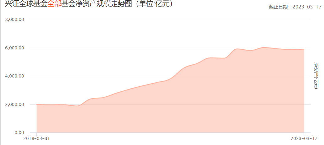 兴全基金整体规模在这一年基本维持稳定,进入2023年后还有所反弹。截至2023年3月17日,这家基金公司基金净资产规模为5885.82亿元,而2021年12月31日时,这个数值为5901.75亿元,两者相差甚小。