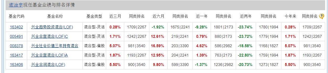 除了兴全合润,谢治宇旗下其他几只产品表现也不尽人意。