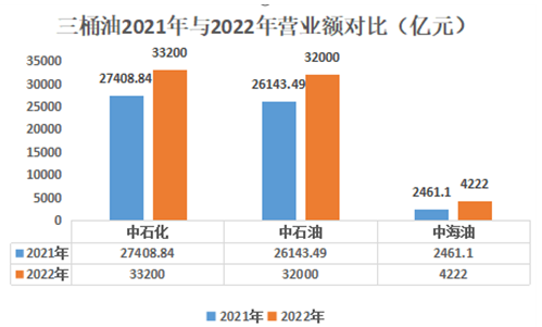 而2021年,中石化实现营业额2.74万亿元,同比增长30.2%;中石油实现营业收入2.61万亿元,同比增长35.2%;中海油实现营业收入2461.11亿元,同比增长58.4%。