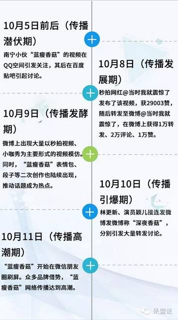 “蓝瘦香菇”由开始在QQ空间、百度贴吧间传播,接着在微博、短视屏发酵、最后被大V、段子手、朋友圈裂变,至少包含5种传播渠道。
