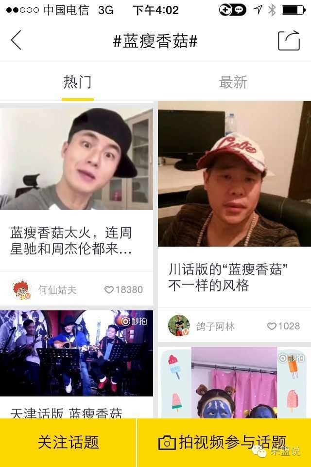- 网红段子手以秒拍视频、小咖秀为主要形式的“蓝瘦”视频模仿,各种版本层出不穷,引发传播的第三个节点