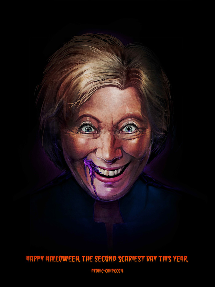 在这支让人观感不适的广告后,他们又推出了美国大选版本系列海报,暗喻最让人害怕的不是万圣节小丑,而是美国大选日。