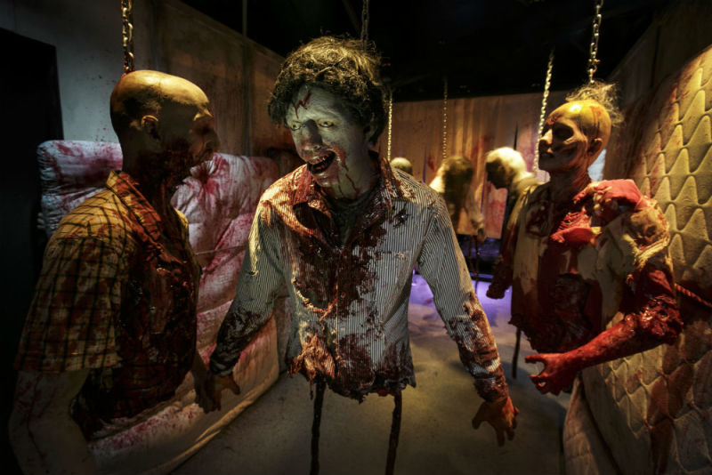 对于环球影城而言,万圣节的Horror Night已经是常规节目了。美国、新加坡和日本的环球影城都会推出当地风格的万圣恐怖夜,比如日本的环球影城特别邀请了贞子、美国有行尸走肉中的僵尸群演们。