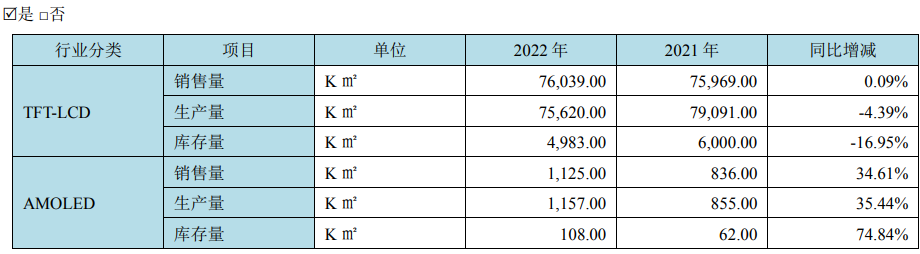 从产销情况来看,京东方A的LCD业务销量同比几乎无变化,为7.6万平方千米,库存量则同比下滑16.95%。