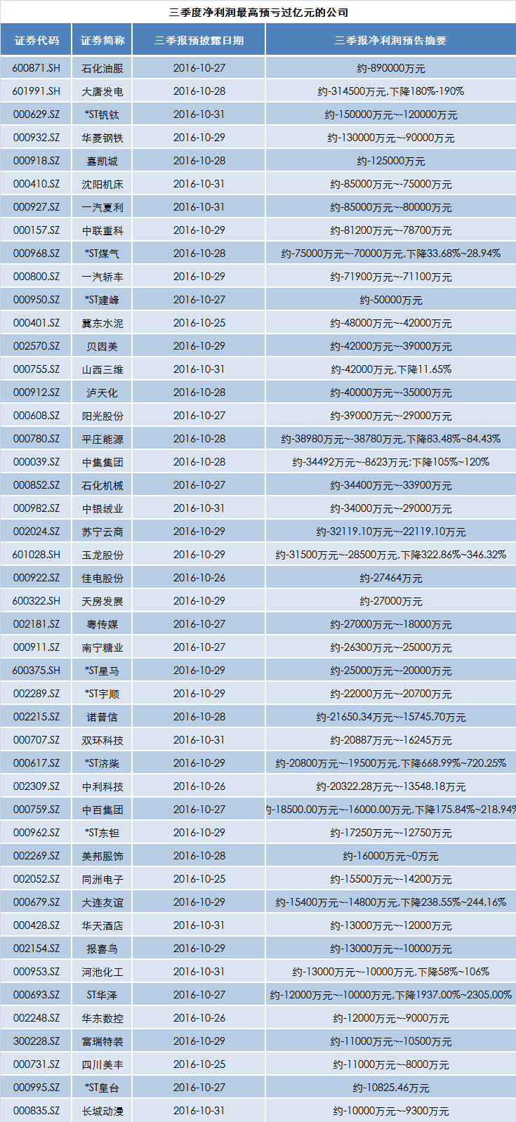 石化油服以预亏89亿元成为“预亏王”。公司在上半年,归属于上市公司股东的净利润已是亏损45.09亿元。意味着三季度,亏损额度扩大了整整一倍。