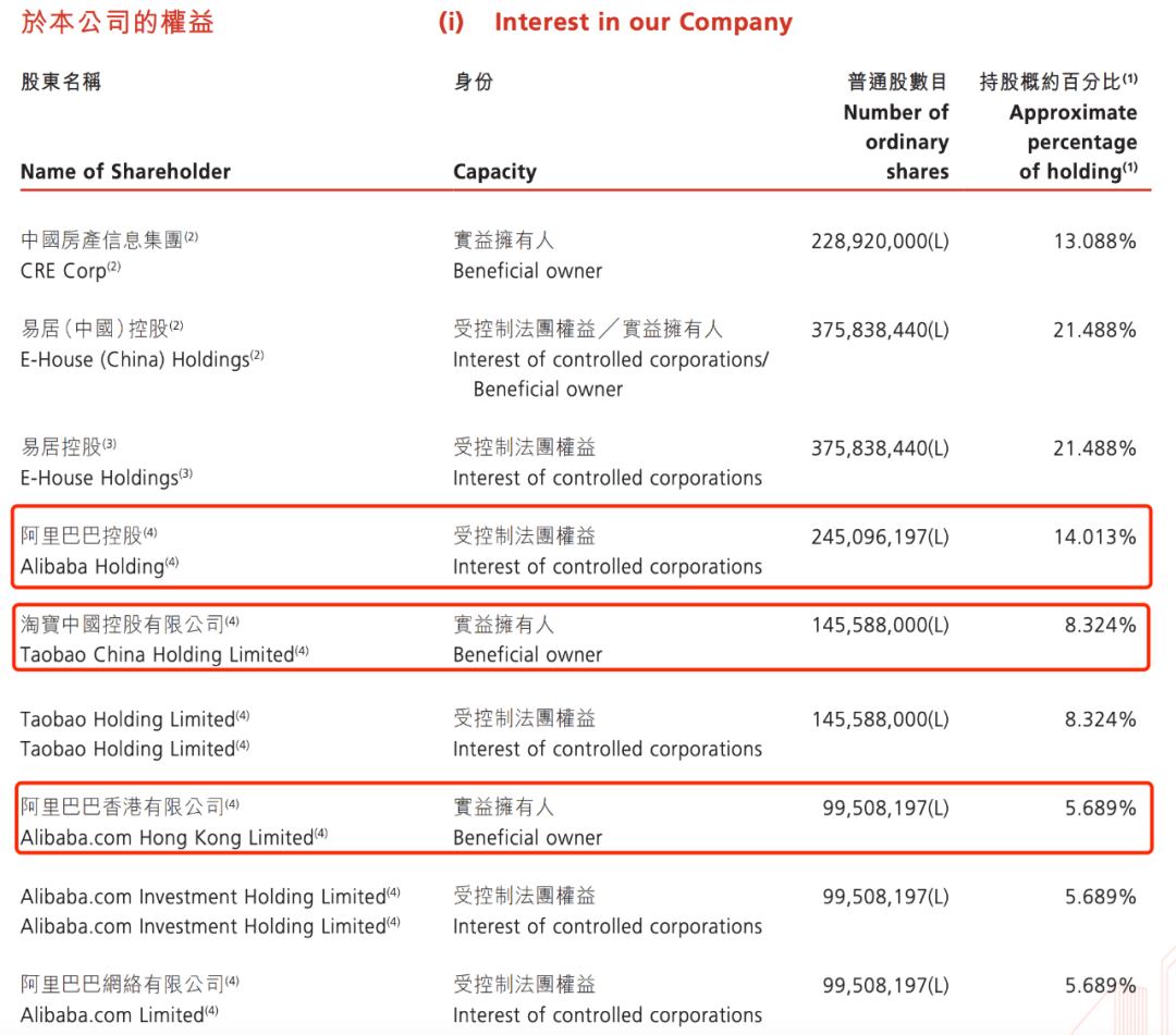 易居发布的2021年财报显示,目前阿里相关公司持有易居27.926%的股份,为第一大股东。