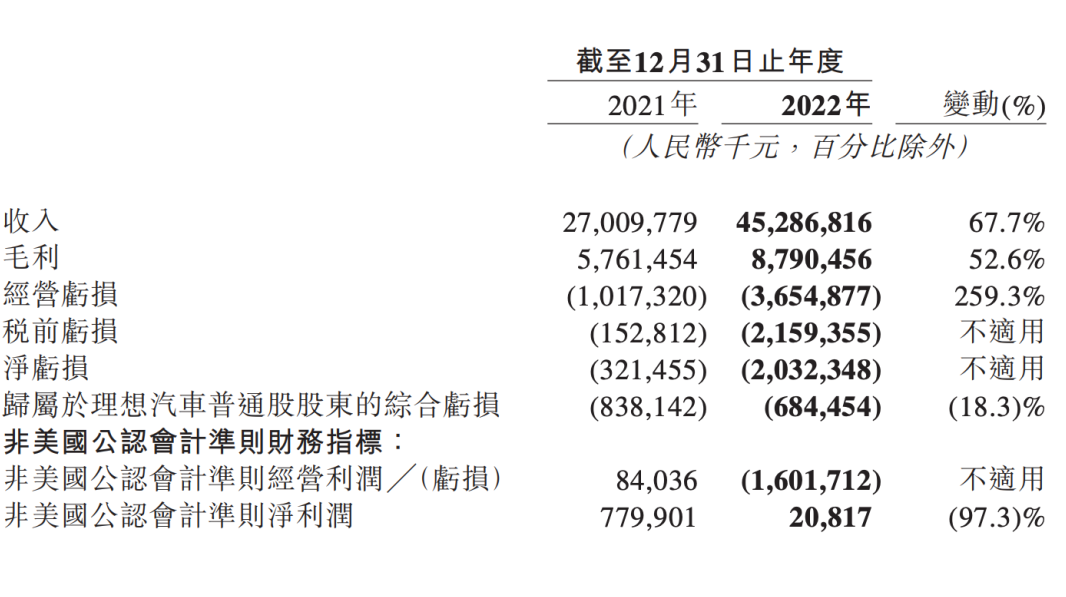 理想汽车2022年财报显示,在交付量、车辆销售收入、毛利等多个方面,都实现了不错的增长。