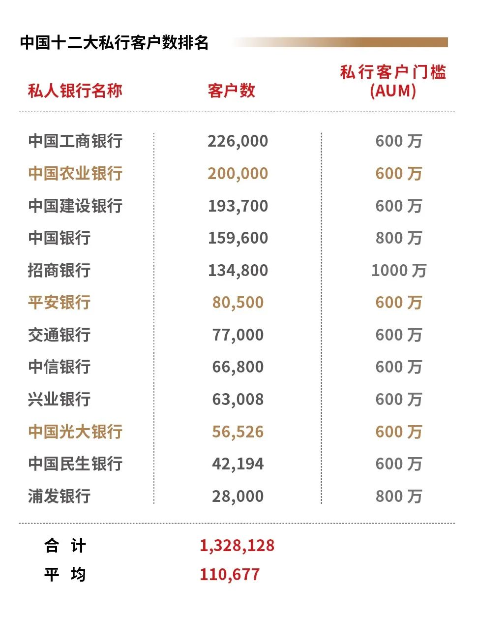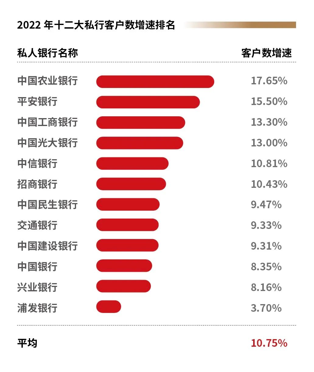 从十二大私行客户数总数上来看,2021年十二大私人银行客户数超过119万,2022年超过132万,增长了10.75%。
