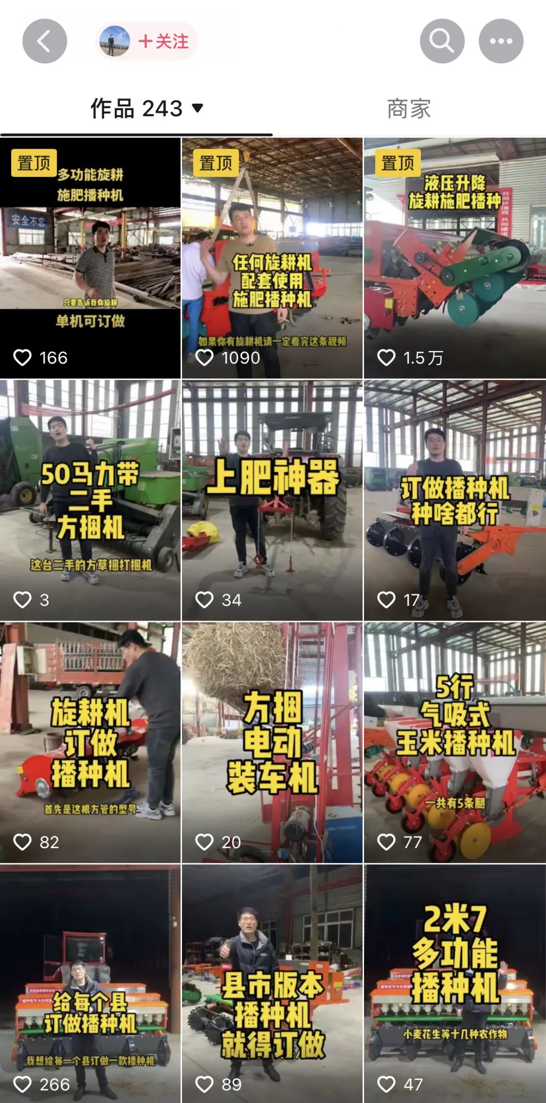 但与此同时,各类平台上的农机内容正变得更多,「卷」是我们接触到的农机厂商做线上时都感受到的趋势。