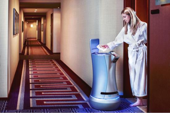 在美国,也同样有酒店将拟人化的机器人用于服务行业。Savioke与喜达屋连锁酒店功能为客人提供了这位机器人管家,包括皇冠假日酒店也能看到它的身影。它可以帮你打开房门、送上早餐,对于活动不便的顾客来说尤为方便。