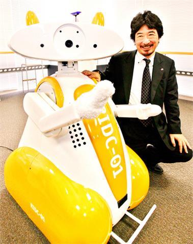 TMSUK在2005年研发的RIDC-01机器人的头部是投影仪、而身体则是一台真空吸尘器。这两个看似不怎么样搭边的功能让其成为了Aizu中心医院的新接待员。它除了可以清洁卫生,还可以提供问路服务,并且将图像投影到身边的墙上。