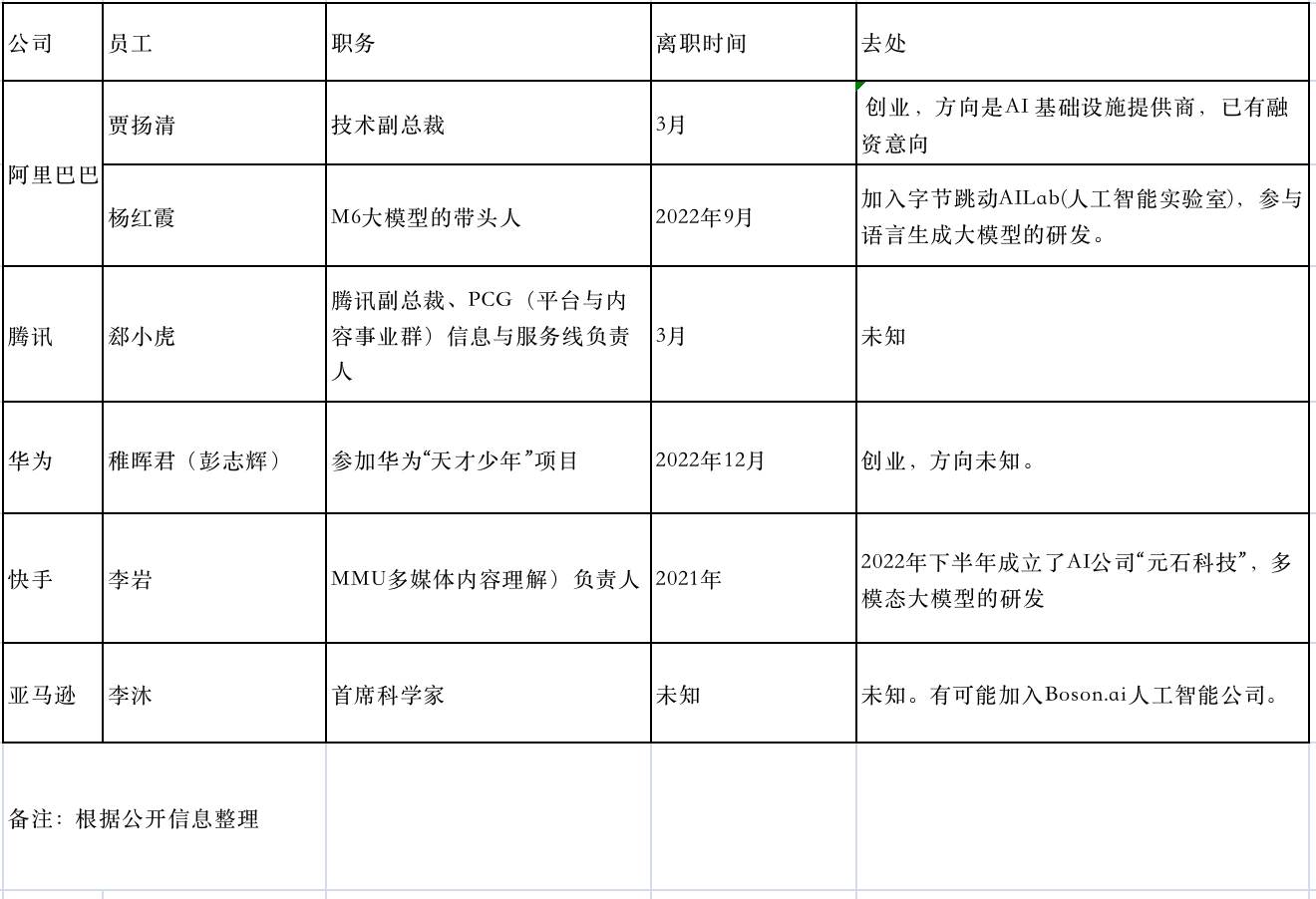 《中国企业家》根据公开消息,汇总了近期从互联网大公司离职创业的高层,并由此看出,他们都有强大的技术背景,与上一波移动互联网创业和创新主体产品经理形成鲜明对比。而这一轮围绕大模型和AI的创业,门槛变得更高,燃烧的钞票也更多。