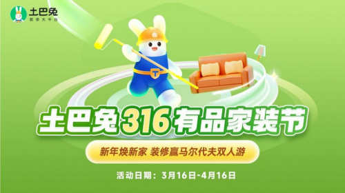 “金三银四”装修热,3月16日,土巴兔“316有品家装节”火爆来袭,长达一个月的钜惠活动为消费者带来省钱省心的一站式装修体验,活动期间,丰厚礼品持续派送,爆款家居家电好物精选推荐让消费者轻松抄作业,土巴兔联合业内优质大牌助力用户全面焕新美家,轻松提升居家生活幸福感。