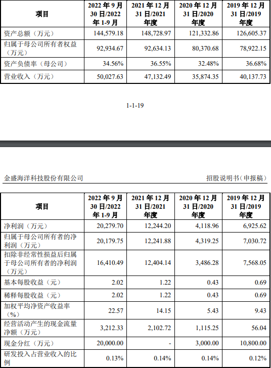 金盛海洋科技股份有限公司近期递交首次发行股票并在主板上市招股说明书(申报稿)。公司冲刺上交所主板IPO上市,本次拟公开发行股票不超过3334万股,不低于发行后总股本的25%。公司预计投入募资9.30亿元,募集资金将用于智慧盐田技术改造升级项目、10000吨/年溴系列消毒产品研究开发项目、钾镁生产装置智能化改造项目、研发技术中心建设项目以及补充流动资金。