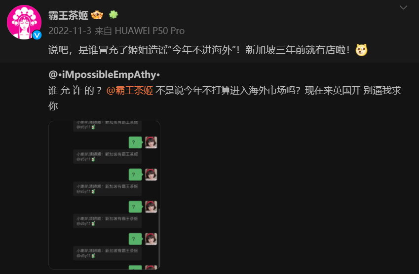 还有本就立志于“以东方茶,会世界友”的霸王茶姬,近几年一直在努力推动海外事业,致力于“让世界年轻人爱上中国茶”。2019年,霸王茶姬的海外首站来到马来西亚,而后是新加坡、泰国……如今,霸王茶姬在已经开设70余家海外门店。