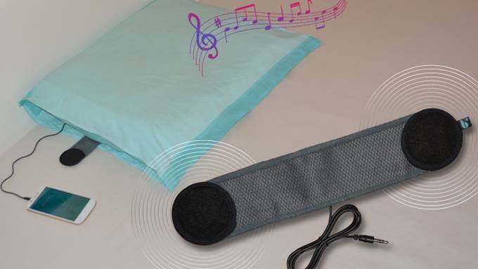 枕内扬声器则可以直接使用耳机插口连接手机,使用时放置在枕头底下。