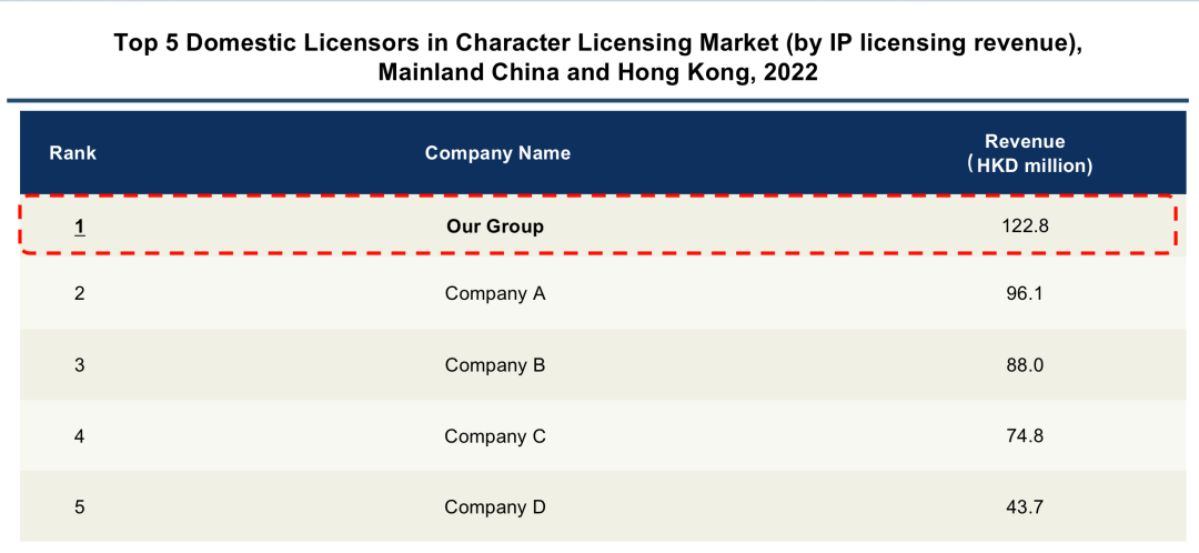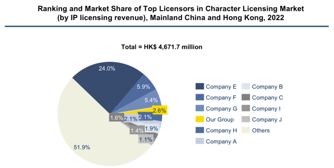 过去的2022,根据弗若斯特沙利文相关数据报告,小黄鸭在中国内地或香港注册的国内授权人当中,按中国内地及香港角色授权市场的收益计,公司(小黄鸭德盈)是“最大”的国内授权人(收益为1.23亿港元)。 足见其IP授权收入在国内市场的巨大规模和量级。