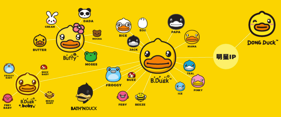 比如“周大福”、“奈雪的茶”、“好来”、《天天爱消除》、“珍视明”、“全友”等等众多品牌方,都是去年曾与其合作的对象。结合前面小黄鸭也有自己的服饰、童装等旗舰店,从中能够看到小黄鸭IP产品是真正做到深入大众生活的方方面面的,衣食住行用、玩等皆有,同时真正做到了渗透到不同年龄层,而其频繁和头部、知名品牌合作也在收入、影响力和整体商业价值层面持续获得提升。但归根结底,这都是源于小黄鸭IP的巨大魅力和背后公司小黄鸭德盈的规划、筹谋。
