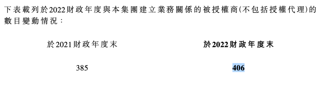 截至2022年末,小黄鸭的被授权商的数量达到了406家,上年同期为385家。