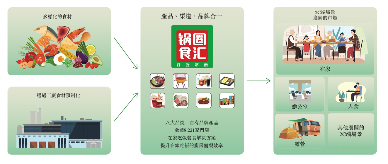 随着中国经济的发展以及人们生活方式和消费模式的变化,中国人的就餐方式也在不断变化,在家吃饭餐食解决方案已经成为一种流行的选择,市场规模自2017年以来以26.1%的复合年增长率增至2021年的人民币2903亿元。伴随赛道的高速发展,锅圈无疑将获得更多发展机遇。