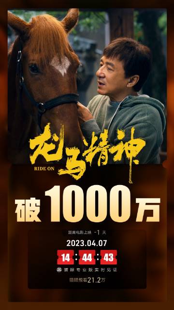 猫眼专业版数据显示,电影《龙马精神》上映首日,总票房突破1000万元。