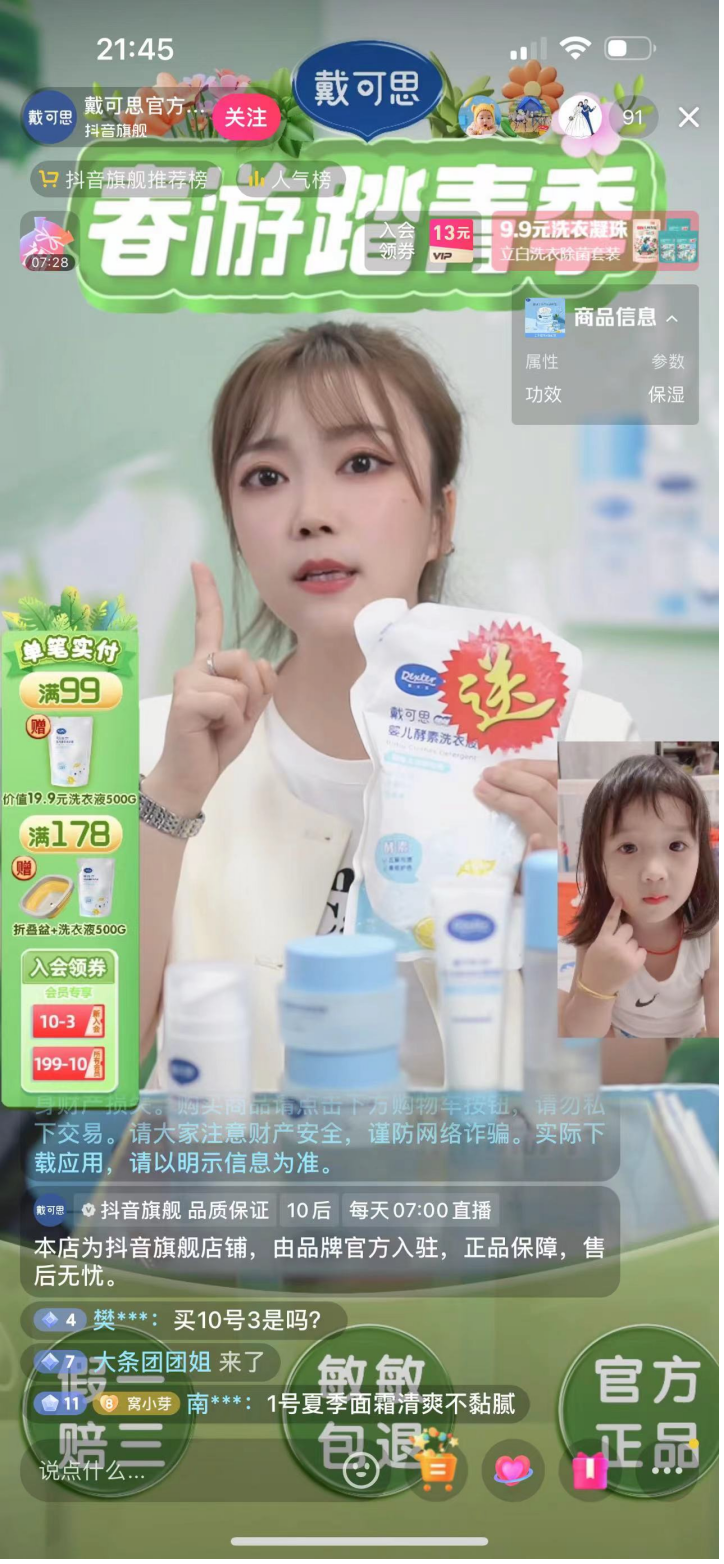 但是,随着抖音等平台和直播卖货的红利期消退,消费者变得愈发理性,线上流量也变得越来越贵,戴可思需要尽快寻找新的营销玩法,因为婴童洗护赛道的内卷、更激烈的行业竞争已近在眼前。
