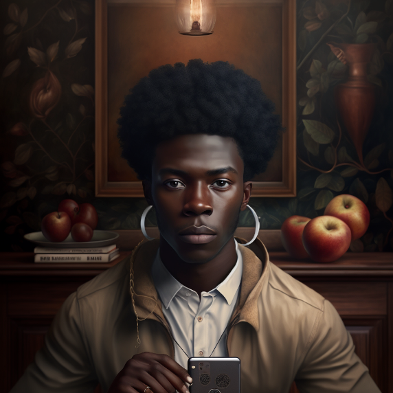 “上面这张图片是当时V4生成的,使用了黑人、复古、室内、听音乐、灯光等关键词,除了手指是6根,其它都很完美了。V4生成出来的人像基本是一个人的大头照,比较单一,到V5就非常多样化了,各种景别都有。”
