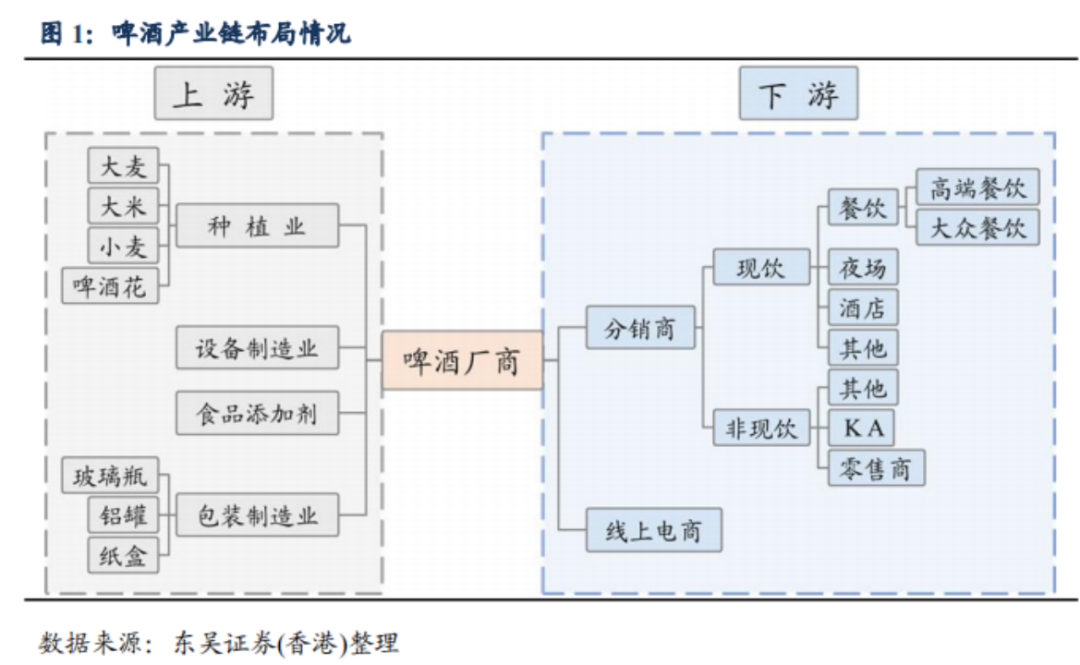 产业链中游是啤酒生产商,也就是燕京、青岛等酒企。