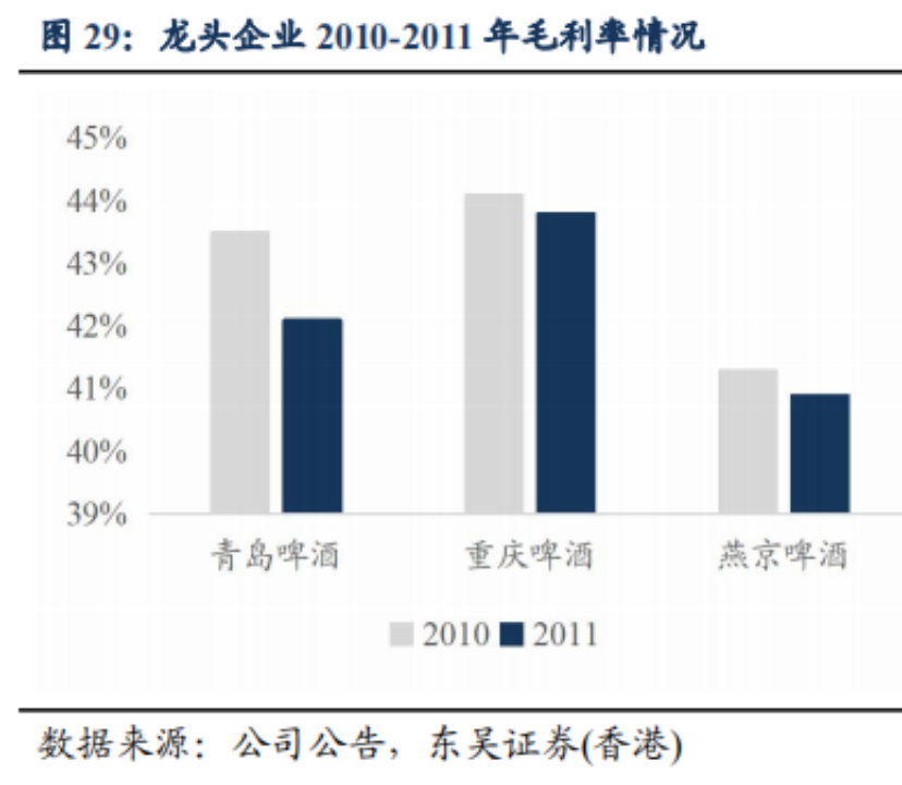 尤其是青岛啤酒,在2008年时,采取了区别性产品涨价举措,但在2011年,所有产品整体提价10%。