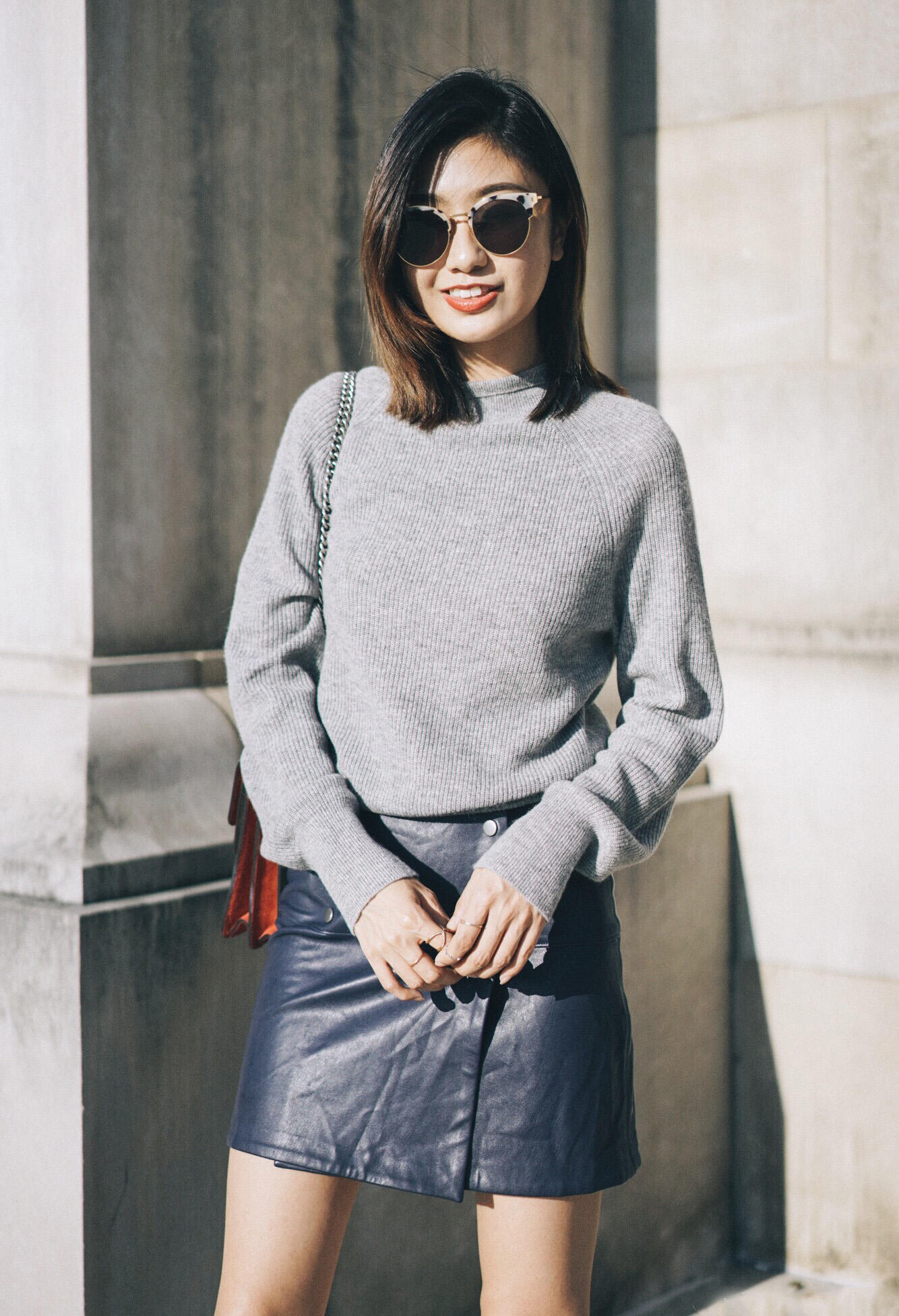时尚博主Savi就穿了这双靴子的黑色,配短裙和灰色毛衣。