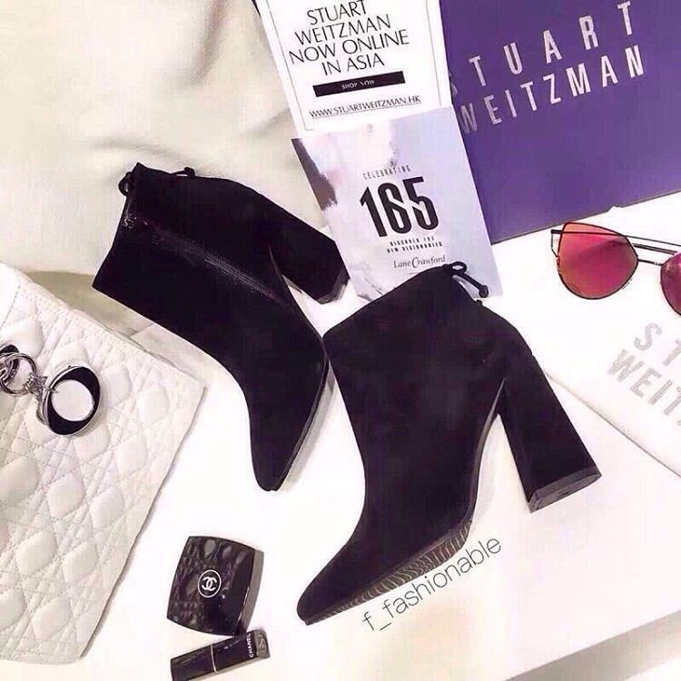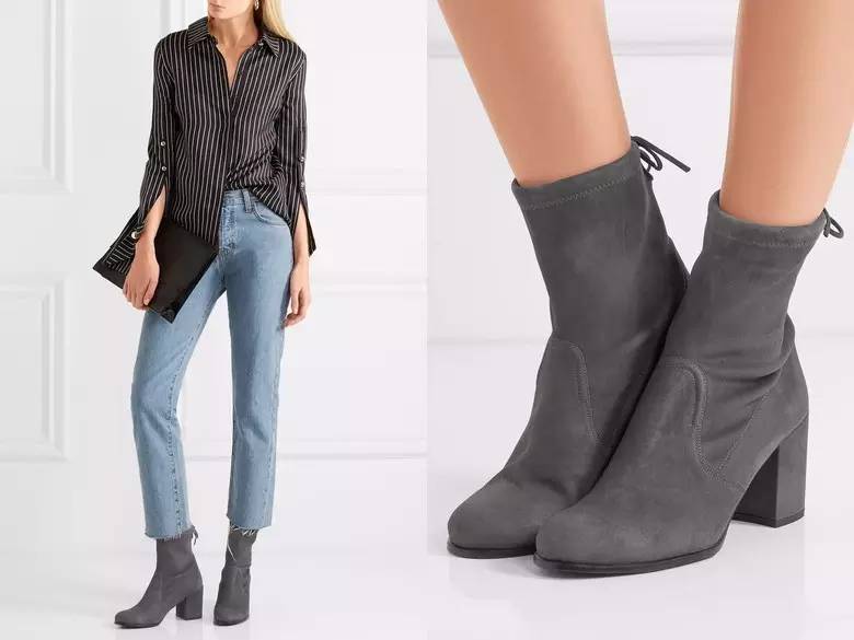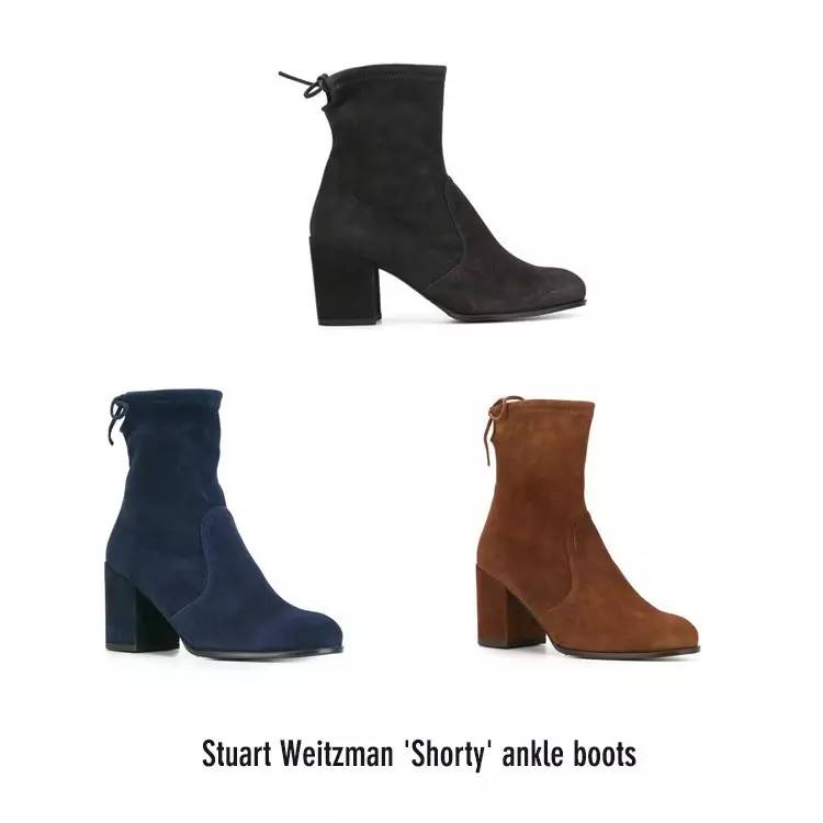 麂皮短靴首推Stuart Weitzman,今年SW出了两双麂皮短靴还蛮火的,一双是小腿那里收了一下的'Shorty' ankle boots。