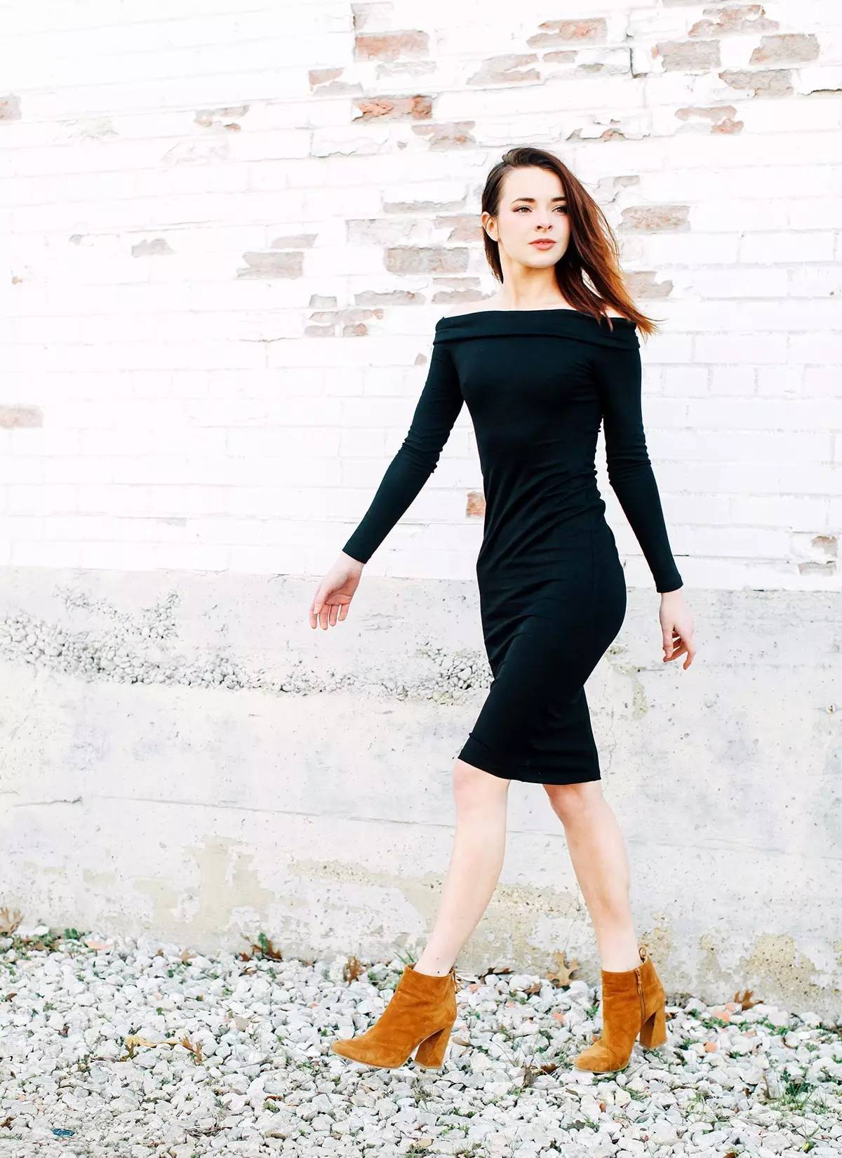 超爱鞋的时尚博主用小黑裙配了这双小短靴。