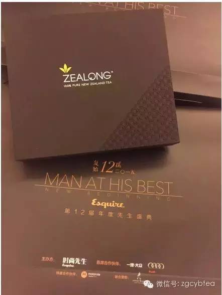 2015年12月,国内顶尖时尚杂志,《时尚先生》的年度盛典上,各路时尚达人、明星名流、商界精英汇聚一堂,而他们人手一份的伴手礼是——来自新西兰的Zealong杰境茶。