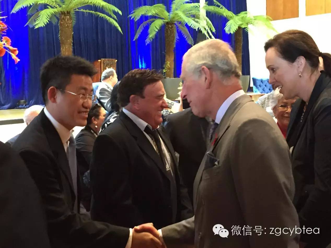 (英国查尔斯王子到访新西兰,与Zealong创始人Vincent握手)