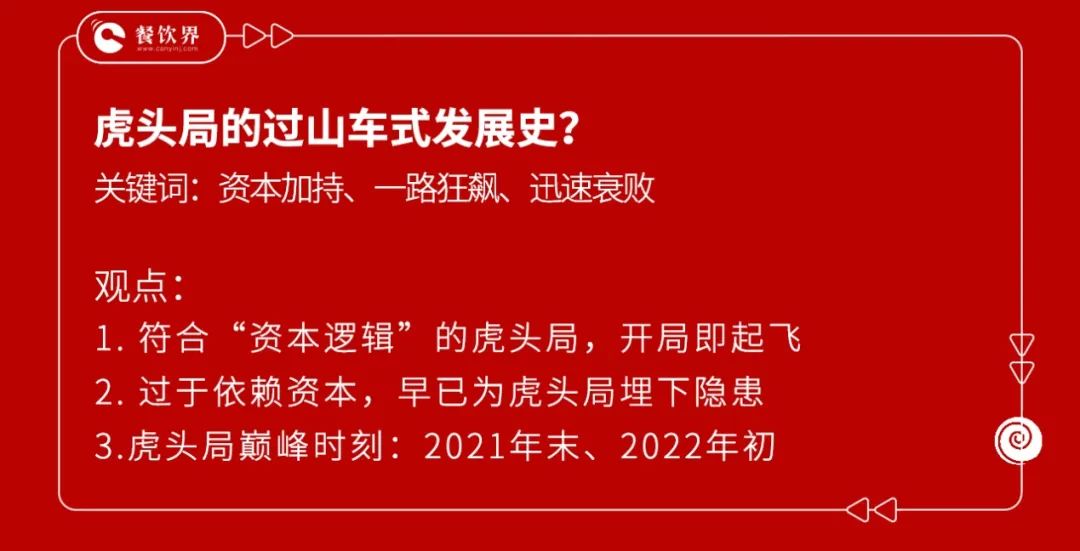 这是虎头局的开局,在当时称得上是餐饮行业的绝对新势力。而为何虎头局有着如此强劲的开局?又为何会从神坛上快速跌落?虎头局的命运,早已藏在它的发展脉络和自身特色中。