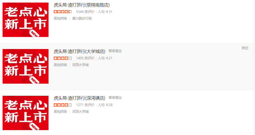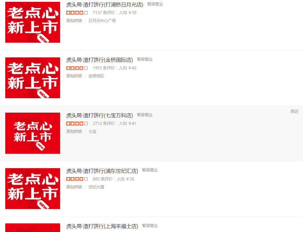 但“有心人”很快发现,这则声明中并未提及大众所关注的线下门店。而在大众点评网上搜索虎头局,上海地区均显示暂停营业;长沙地区除蔡锷南路店外,也均显示暂停营业。