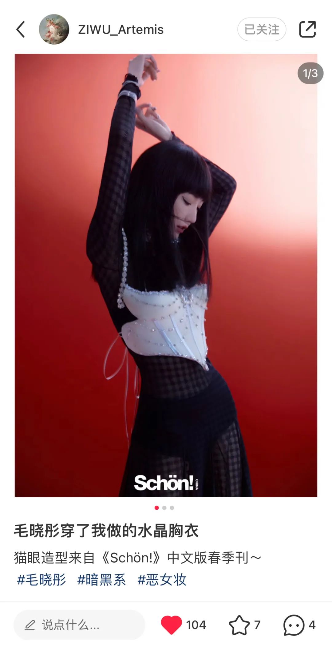 毛晓彤、程潇、孟美岐、何泓姗、李溪芮、周洁琼、杨超越……不少女明星的造型师敲开了恣无的聊天框,跟她们借服装,并探讨更多可以在水晶胸衣上发挥的设计灵感。