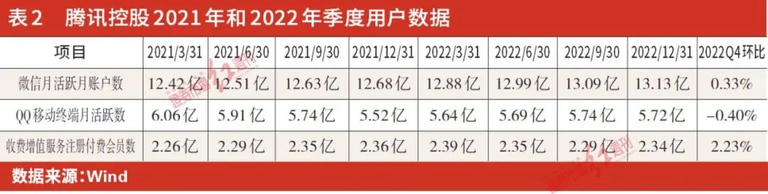 从收费增值服务注册用户付费数上看,这两年从2.26亿缓慢增长到2.34 亿,平均每个季度增长100万,年增长400万左右,年度增长率约2%,这个增长速度也是非常缓慢。分季度上看,2022年四个季度的波动相对大一些,一季度增长300万,二季度减少400万,三季度减少600万,四季度增长500万,是否能够稳定地增长,目前还需要进一步观察。