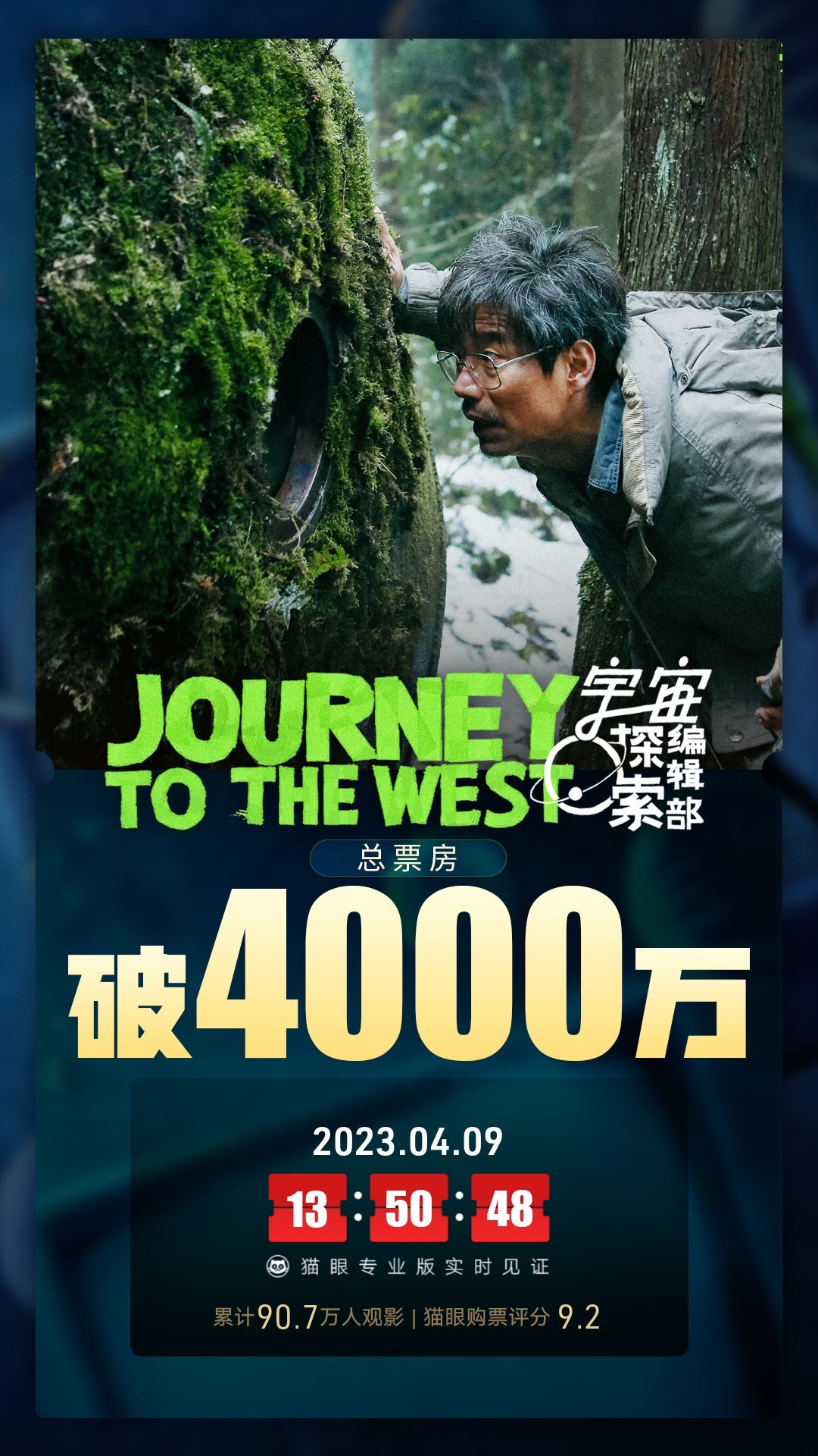4月9日,猫眼专业版数据显示,电影《宇宙探索编辑部》上映9天,总票房突破4000万元。